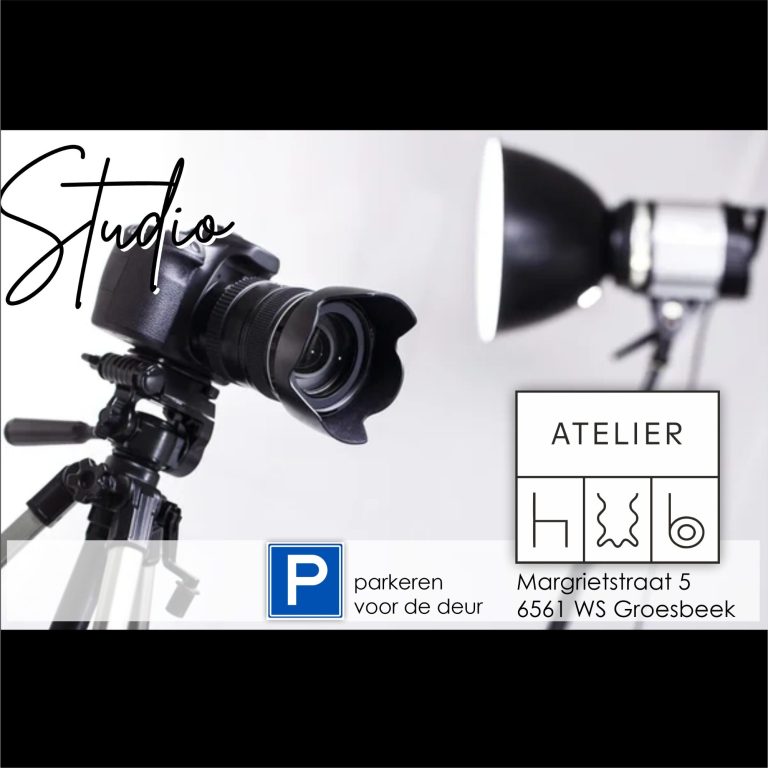 Mijn fotostudio is gevestigd in een artistiek centrum genaamd AtelierHUB. In dit centrum werken meerdere kunstenaars in verschillende disciplines. De fotostudio bevindt zich in het souterrain van het centrum en is dus vanaf de ingang niet te zien. De afmetingen van de studio zijn ca. 6 x 11 meter. Ruim genoeg om voldoende bewegingsvrijheid te hebben en klein genoeg voor een intieme sfeer. Er is ook een afgeschermde gelegenheid (met spiegel) waar je van kleding kunt wisselen en je spulletjes kunt laten.